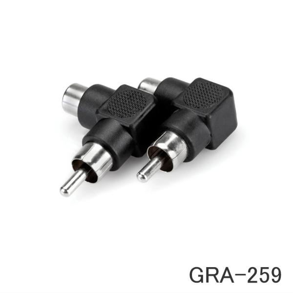GRA-259は、ストレートのRCAピンプラグをL型に変換するためのアダプターです。