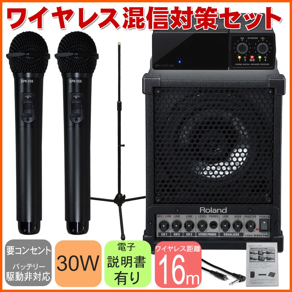 混信対策に 赤外線ワイヤレスマイク2本付き 簡易PAセット Roland CM-30(出力30W)