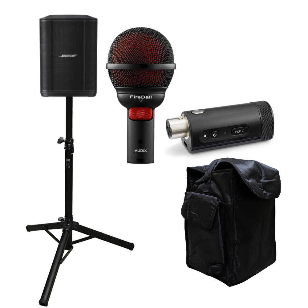 【セット内容】BOSE S1Pro+本体(スピーカーカバー付き)/汎用ミニスピーカースタンド×1/AUDIX ダイナミックマイク FIREBALL V×1/Bose S1 Pro+用ワイヤレスマイク / ライントランスミッター - XLR×1