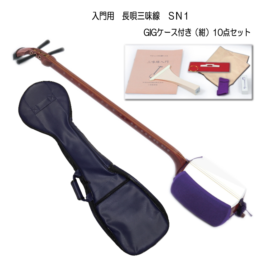 初心者向け 長唄三味線 SN1 日本和楽器製造「すぐに弾ける基本セット+三味入れくん 紺色」