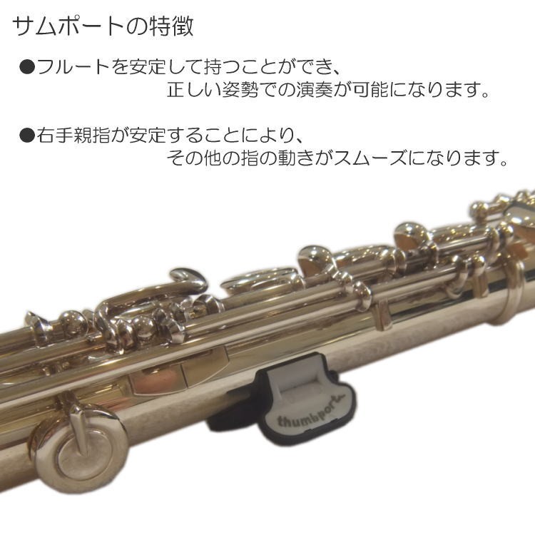 フルートを演奏するうえで、意外に難しいのが持ち方(姿勢)です。 フルートの持ち方は3点支持と呼ばれ、左手人差し指付け根、右手親指、口元の3か所で支えて持つのが正しい構え方です。 本商品「サムポート」はその持ち方をサポートしてくれる優れものです! 右手親指の位置や角度が安定することにより、全体の指が動きやすくなり安定した演奏が可能になります。