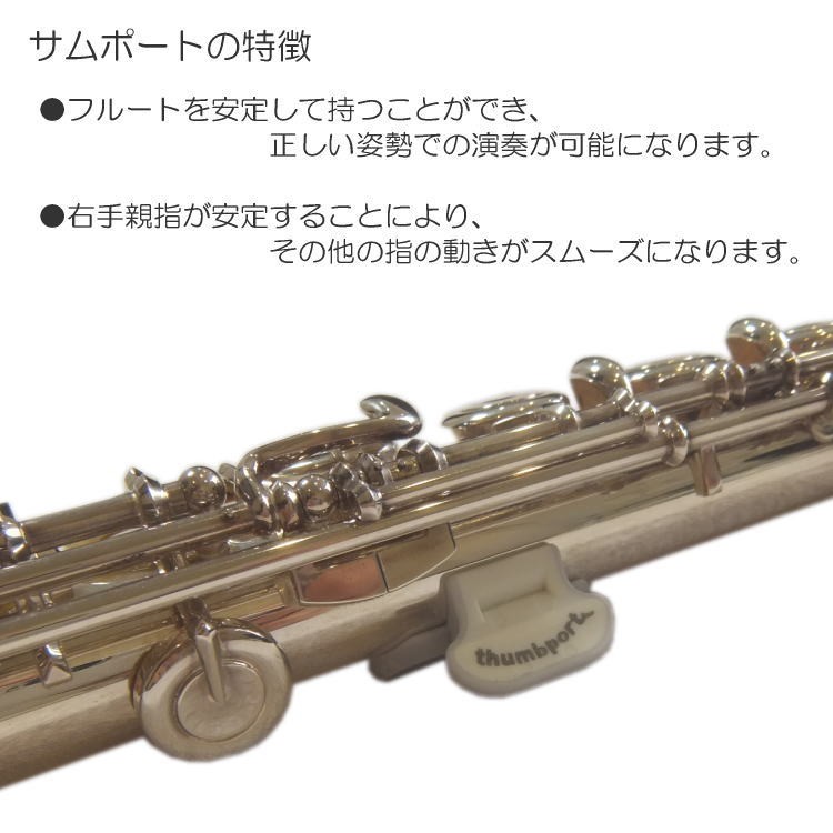 フルートを演奏するうえで、意外に難しいのが持ち方(姿勢)です。 フルートの持ち方は3点支持と呼ばれ、左手人差し指付け根、右手親指、口元の3か所で支えて持つのが正しい構え方です。 本商品「サムポート」はその持ち方をサポートしてくれる優れものです! 右手親指の位置や角度が安定することにより、全体の指が動きやすくなり安定した演奏が可能になります。