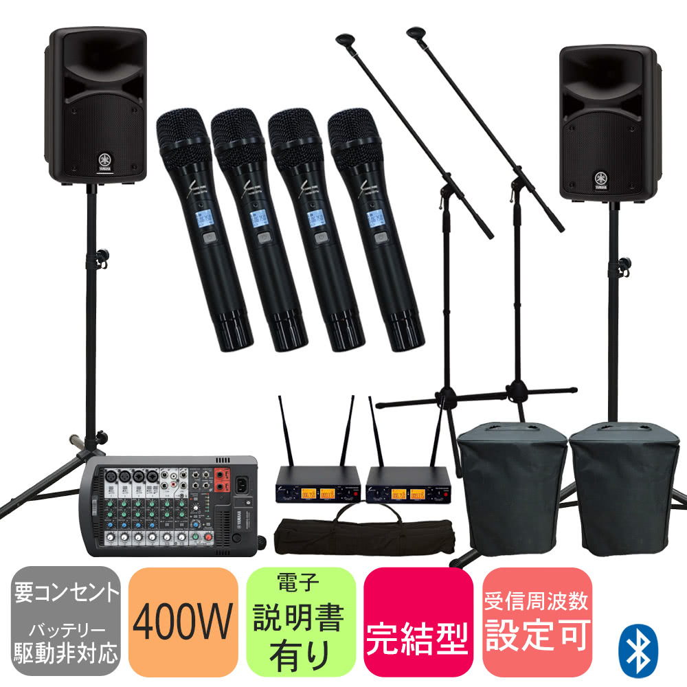 ヤマハ 簡易PAセット ワイヤレスマイク4本付きセット STAGEPAS400BT マイクスタンド2本
