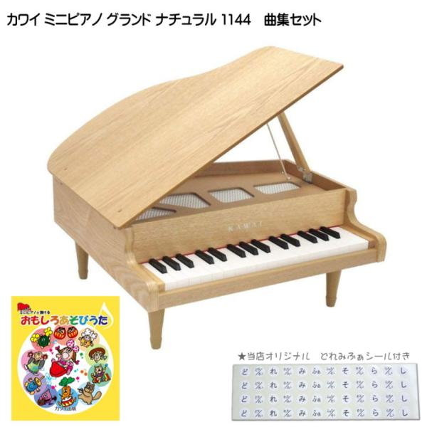 KAWAI ミニグランドピアノ・ナチュラル1144/ミニピアノ専用曲集「おもしろあそびうた」/どれみふぁシール