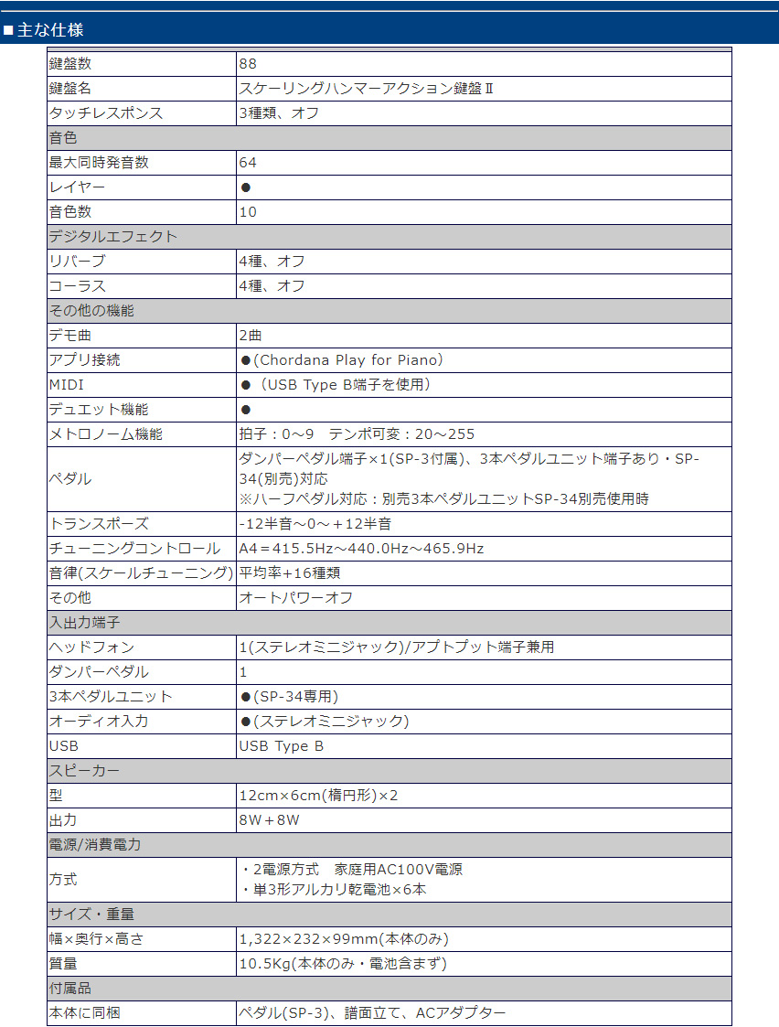 スリムなボディで軽量&本格的なハンマーアクション 電池駆動まで実現しました。 | ||||