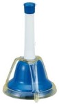 机の上にベルを並べて柄の上部を押すことで音が出せます
