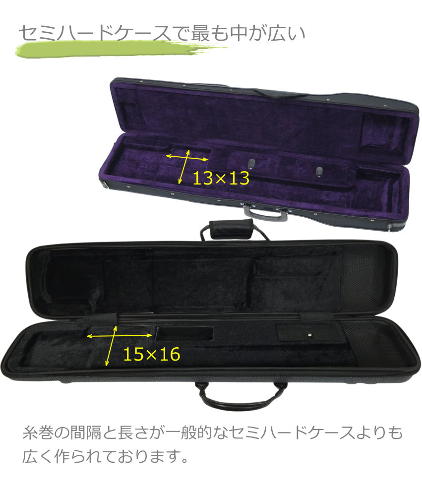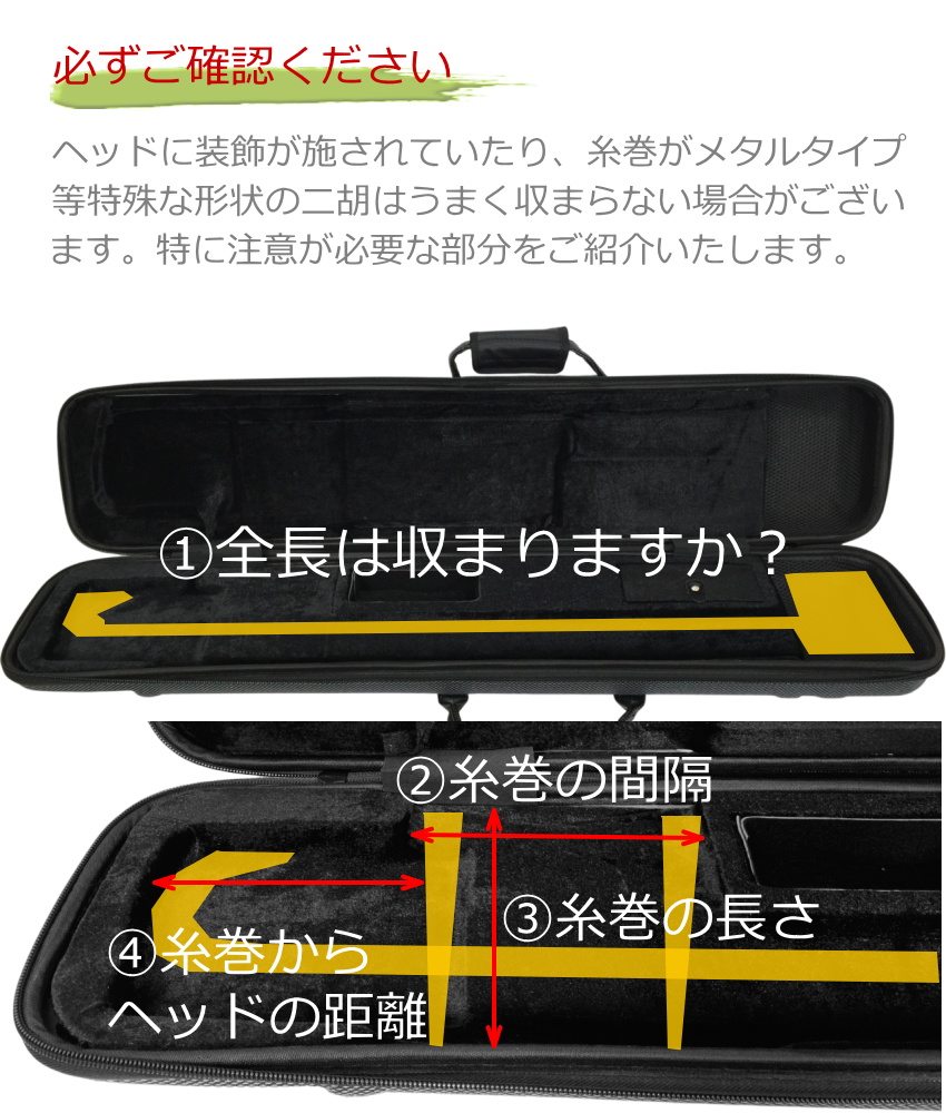 | 二胡は手作りの楽器で、スケールは決まっていても全長や装飾などは自由。 様々な形の二胡が流通致しております。 ケースは簡易的なものが多く、楽器よりも先に壊れますので買い替えをご検討いただく方も少なくありません。 簡単に、二胡ケースを求めれば収納できると思ってお買い求めになり、「上手く収納できない。」と言うお問い合わせをいただく事もございます。 二胡は、特にヘッドに装飾がなされていて全長が大きなタイプや、メタルペグ仕様で糸巻が長いタイプ。 一般的な形に見える二胡であっても何故か収納できない。と言う場合もございます。 本商品は、セミハードケースの中で中の作りが広いタイプです。 多くの二胡が収納いただけますが、全てではございません。 くれぐれも、お求めになる前にしっかりとサイズをご確認いただき、お手持ちの二胡が収納できるケースであるかお確かめください。 それでは、本商品の特長をご案内致します。 |