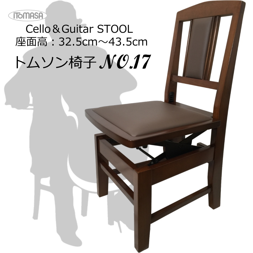 リーズナブルで品質の良いイトマサの背付きピアノ椅子(トムソン椅子)から、チェロやギターまた二胡にご使用いただける高さ調整が可能な椅子が発売されました。