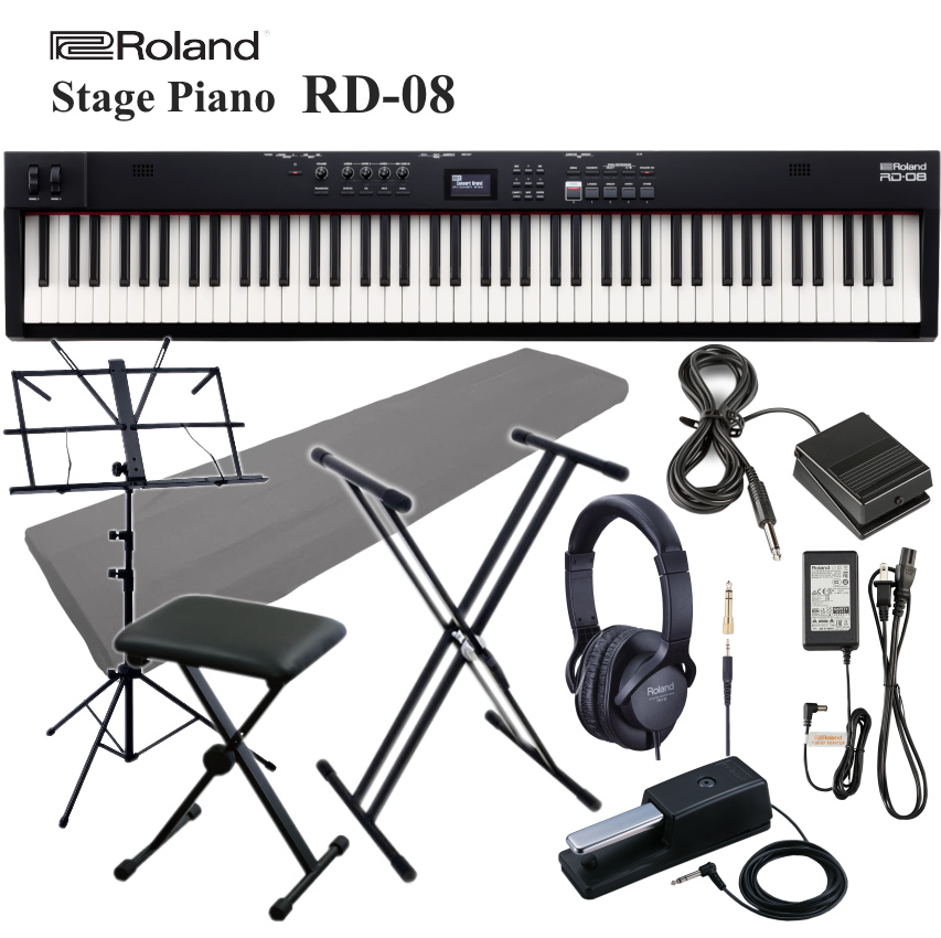ローランド ステージピアノ RD-08 X型スタンド7点セット