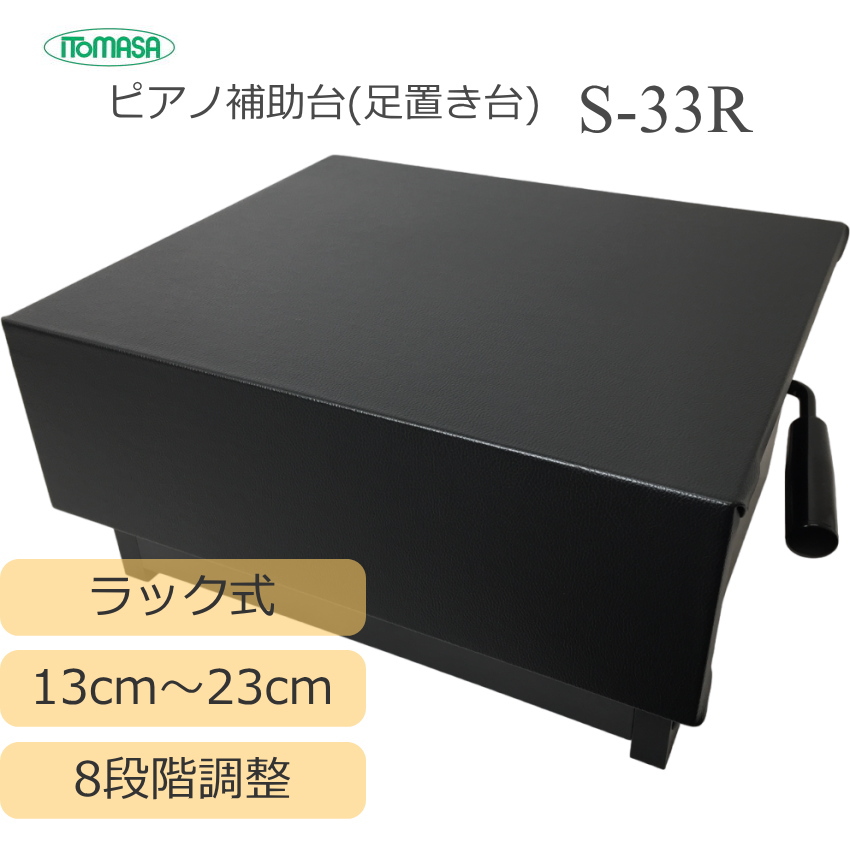 ピアノ補助台には様々な機種が発売されておりますが、イトマサのロングセラー補助台S-33に、ラック式の8段階調整補助台が発売されました。S-33Rをご紹介いたします。