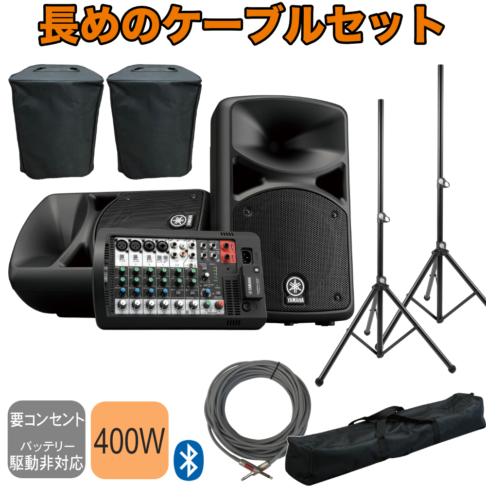 YAMAHA STAGEPAS400BT + 追加注文の多いスピーカースタンドと15mのスピーカーケーブルを付けたセット