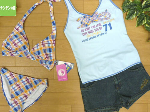 レディース水着 T&C ホルターネックビキニ タンキニ4点セット■サーフ系☆夏の定番ブランド「Town&Country Surf Designs」の水着です。■タンキニ・ビキニ・ショーツ・パンツの4点セットです。■ビキニ・タンキニには、パットポケットがついております。お好みのパットを入れてバストの大きさを自在に表現出来ます。■ビキニ・ショーツは安心の裏地付きです。■デニムパンツもロゴマーク入りで、普段着にも使えそうなデザインです♪■4点セットなので、着こなし自由自在!その日の気分で楽しめます☆水着:11L B86cm H92〜100cm パンツ:L W69〜77cm
