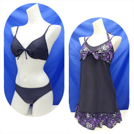 レディース 水着(10579) ビキニ3点セット ワンピース付 花柄 グレー×紫 9号