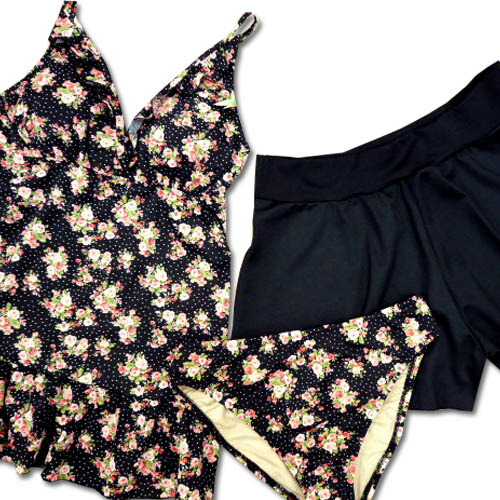 水着 レディース タンキニ 3点セット 9M パンツ付 Bouquet Noir カバーアップ ドット 花柄 9号