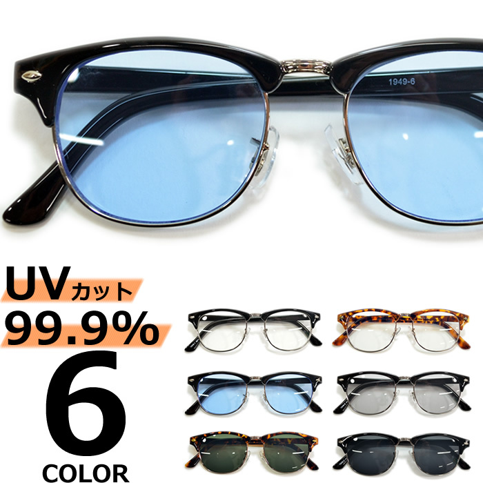 サングラス メンズ レディース UVカット 伊達メガネ サーモント ブロウ クラブマスター 色付き 薄い色 カラーレンズ