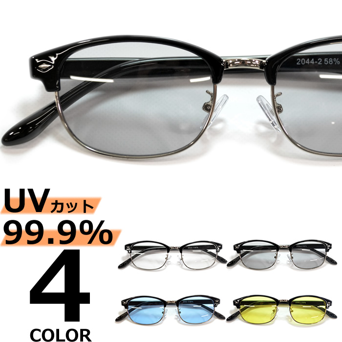 サングラス メンズ レディース UVカット 伊達メガネ クラブマスタータイプ 色付き 薄い色 カラーレンズ