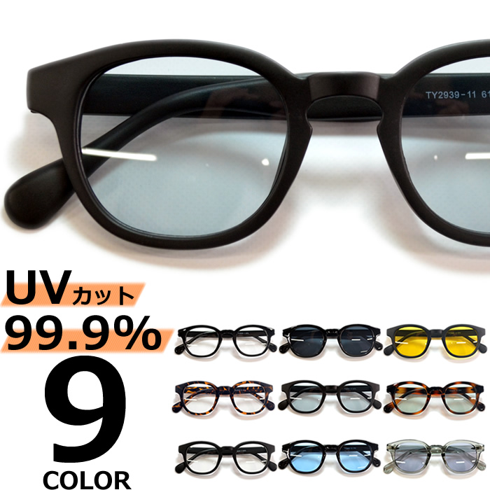 サングラス メンズ レディース UVカット 伊達メガネ 丸メガネ ボストン ウエリントン 色付き 薄い色 カラーレンズ