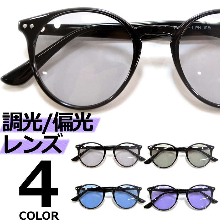 サングラス 偏光 調光 メンズ レディース UVカット 伊達メガネ ボストン 丸メガネ 色付き 薄い色 カラーレンズ