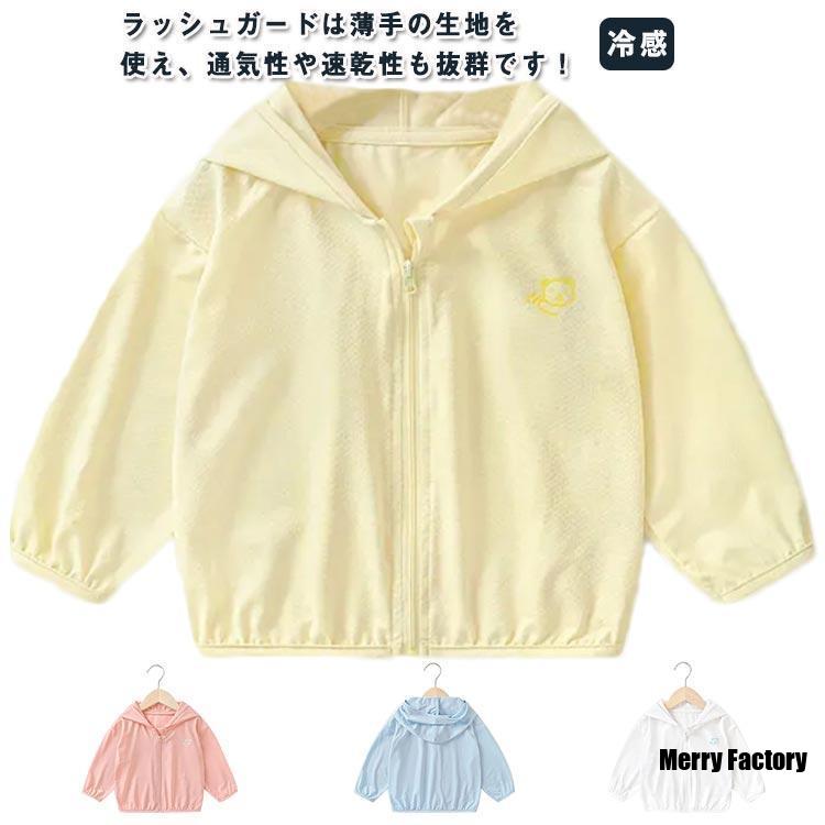 UVカット パーカー キッズ ラッシュガード UPF50 接触冷感 吸汗 速乾 凉しい 子供 ジュニア 男の子 女の子 薄手 無地 可愛い ロゴ ベ