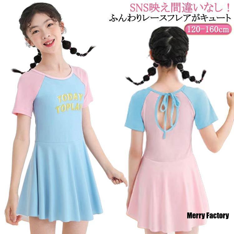キッズ 水着 女の子 ワンピース 120cm 130cm 140cm 150cm 160cm オールインワン 水泳キャップ 半袖 スクール水着 セパレ