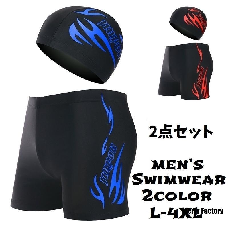 水着 帽子 2点セット メンズ スイムウェア パンツ スパッツ ショート丈 ボクサー型 ボックス型 キャップ 競泳 水泳 フィットネス 大きいサイズ