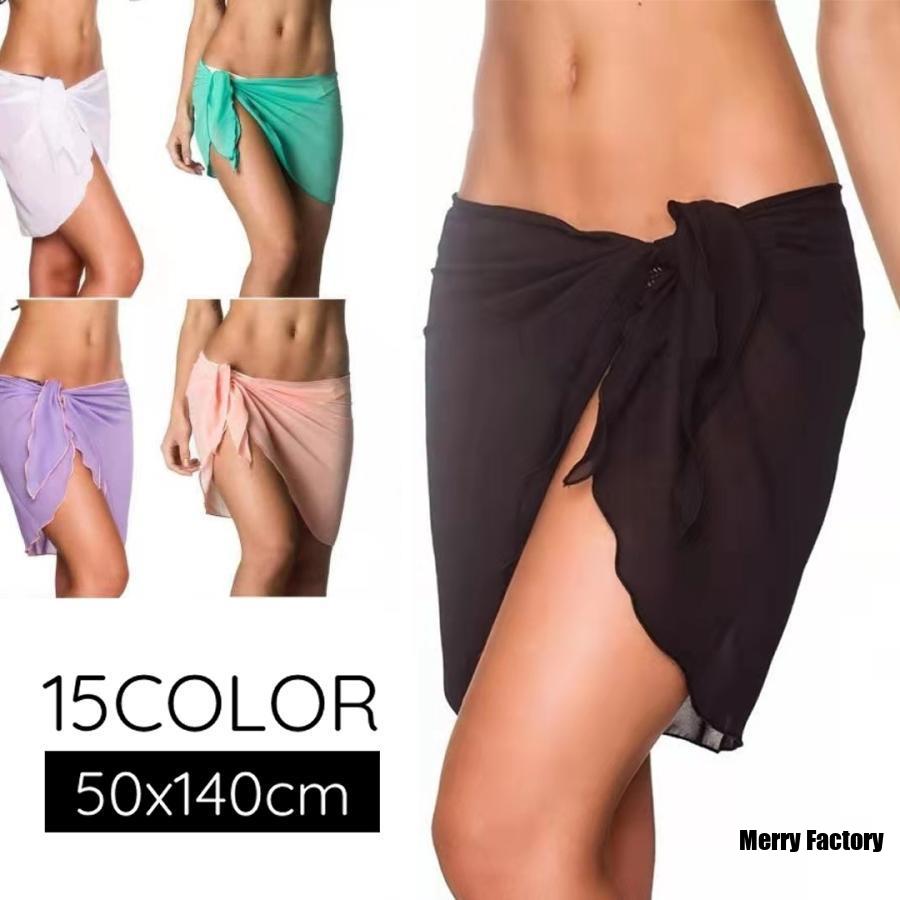 パレオ 透け感 シアー 水着 ミニ ショート 無地 単色 シンプル シフォン 海 ビーチ シースルー 50x140cm カラバリ豊富