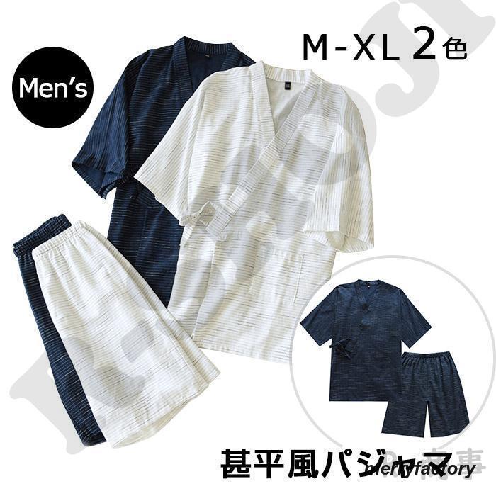 甚平 パジャマ 上下セット メンズ 男性 カップルペア 寝巻き セパレートパジャマ 長ズボン ルームウェア ナイトウエア 春 夏 浴衣 七分袖 綿 二重ガーゼ