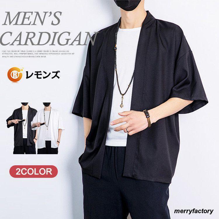 羽織 七分袖 メンズ 無地 はおり 浴衣風 男性 甚平 和風 チャイナ風 モード系 春 夏 サマー 祭り カーディガン スリム 四季適用 夏