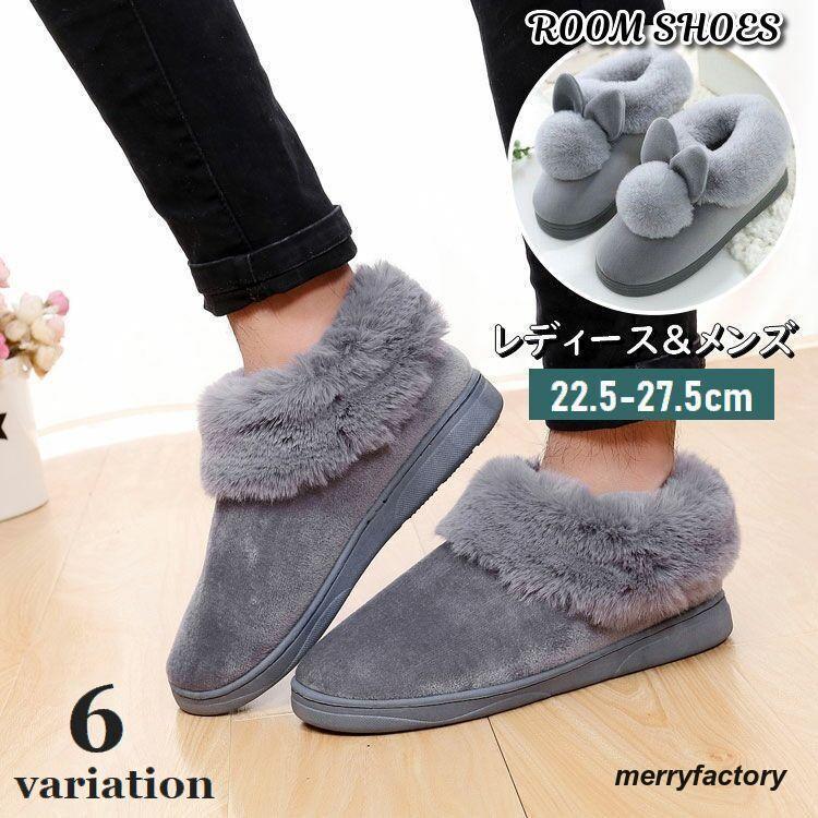 ルームシューズ スリッポン型 メンズ レディース 履物 室内用 フェイクファー ボンボン ボア 前詰まり うさぎ うさ耳 モコモコ 柔らかい 暖かい