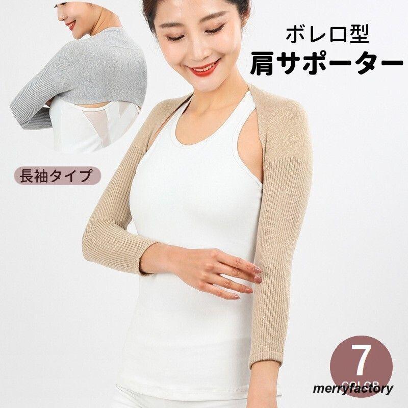 肩サポーター ボレロ型 長袖 レディース 女性用 アームスリーブ アームカバー ストール風 ショール風 ニット リブ 無地 冷房対策 紫外線対策 防寒