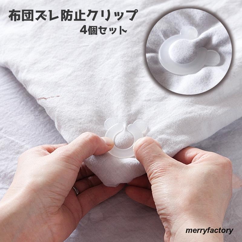 布団ズレ防止クリップ 4個セット 安全 布団カバー 毛布 掛け布団 寝具 固定 布団クリップ ズレ防止 ずり落ち 滑り止め クリア 透明 針なし 取り