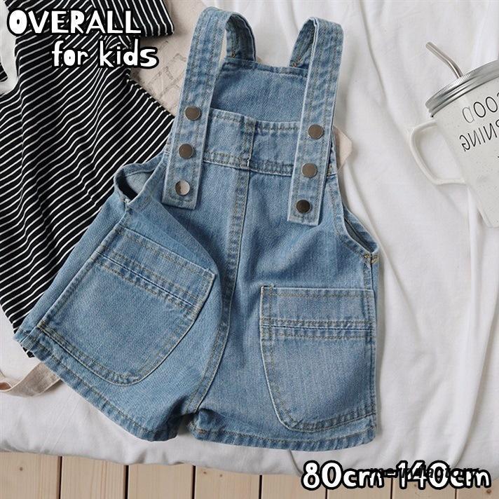 オーバーオール デニム キッズ ベビー 子供 女の子 男の子 ボトムス サロペット ショート丈 ショートパンツ ポケット 無地 シンプル カジュアル