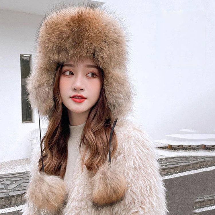 ファーキャップ 帽子 レディース 秋冬 ファー ハット ロシア帽 本物のファー フォックスのファー 帽子 ロシアン帽 レディースキャップ ふわふわ もこもこ