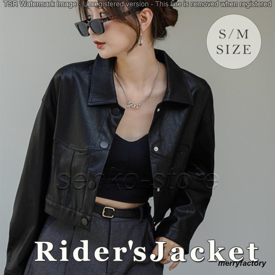 レディースライダース ライダースジャケット ライダース ジャケット コート 春 スプリングコート 黒 フェイクレザー PUレザー クロップド丈 革ジャン ブルゾン