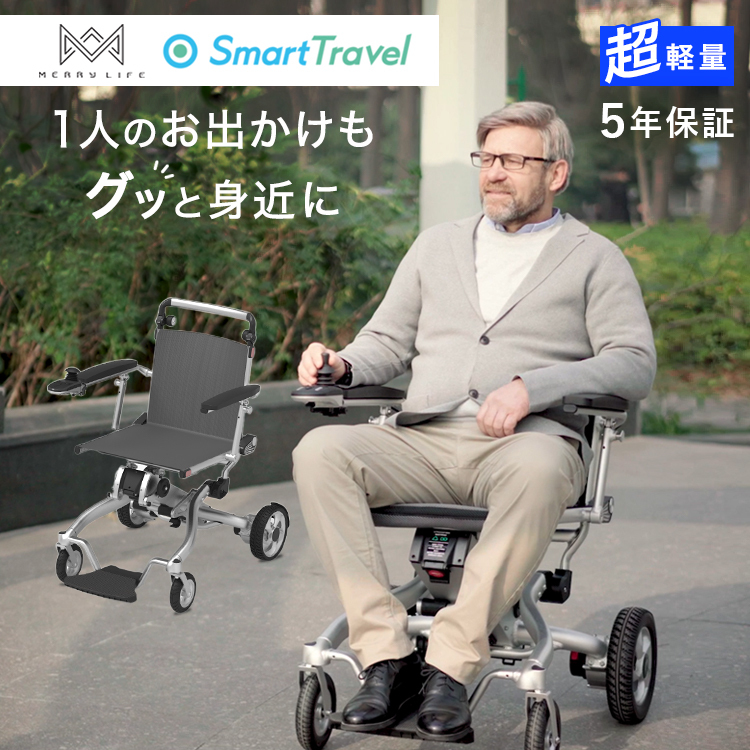 スマートトラベル電動車椅子 シニアカー 折畳み 軽量 アルミ合金製 ノーパンクタイヤ コンパクト 小回り 段差 坂道 室内 自動ブレーキ 転倒防止 120kg耐体重