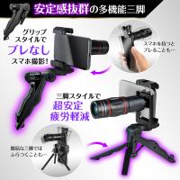 【丈夫な多機能三脚】三脚は手持ち、置き型(スマホは縦横)自由に設置して使用いただける多機能三脚に進化!撮影の際のブレと疲労感を軽減を第一考え実用性を兼ね備えた三脚に仕上がりました。安定感も抜群で倒れる心配は入りません。三脚重量も単眼鏡と同じ96gと超軽量です。