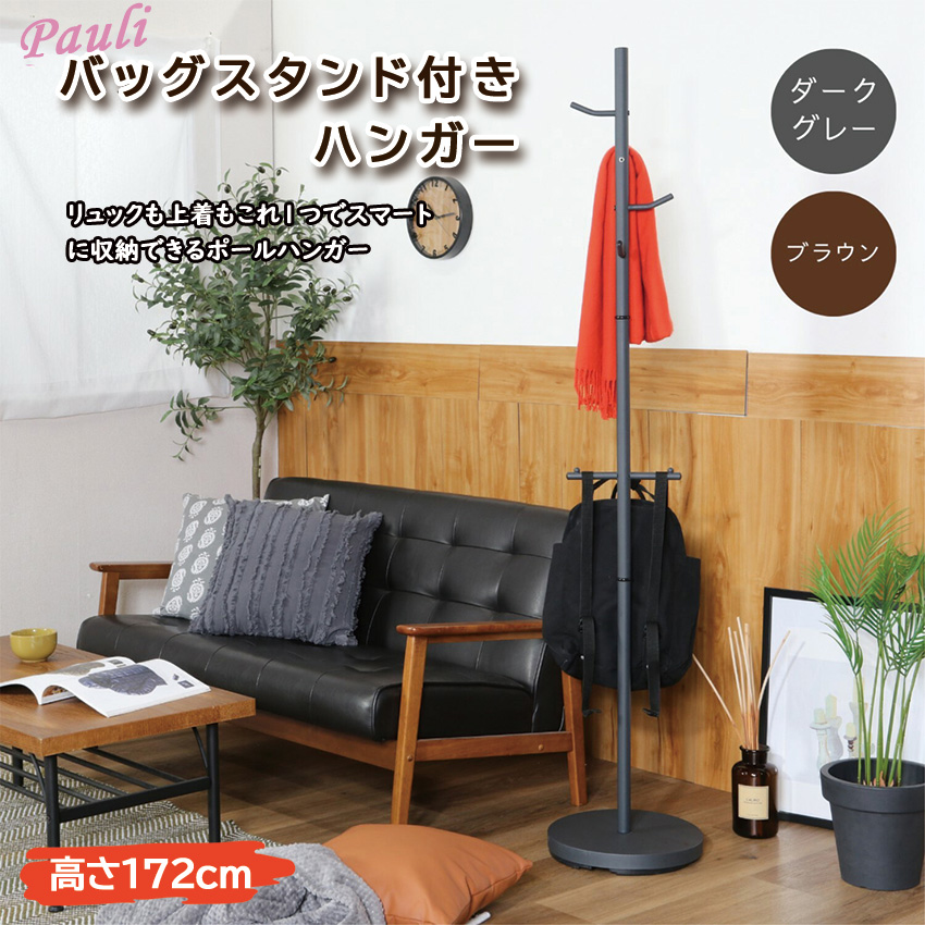 バッグスタンド付きハンガー パウリ 送料無料 2color マットカラー ハンガー ポールハンガー ランドセル 帽子 高さ172cm リュックハンガー コートハンガー