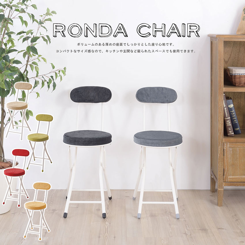 RONDA CHAIR ロンダ チェア PC-32 6color スツール クッション 隙間収納 いす イス パソコンチェア 椅子 チェア 丸イス フォールディングチェア 背付き