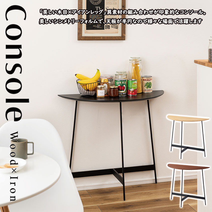 コンソール WE-893 送料無料 3color コンソールテーブル ディスプレイ 半円 飾り棚 机 スリム 幅83cm 玄関 居間 キッチン ドレッサー 木製 軽い 北欧 木目