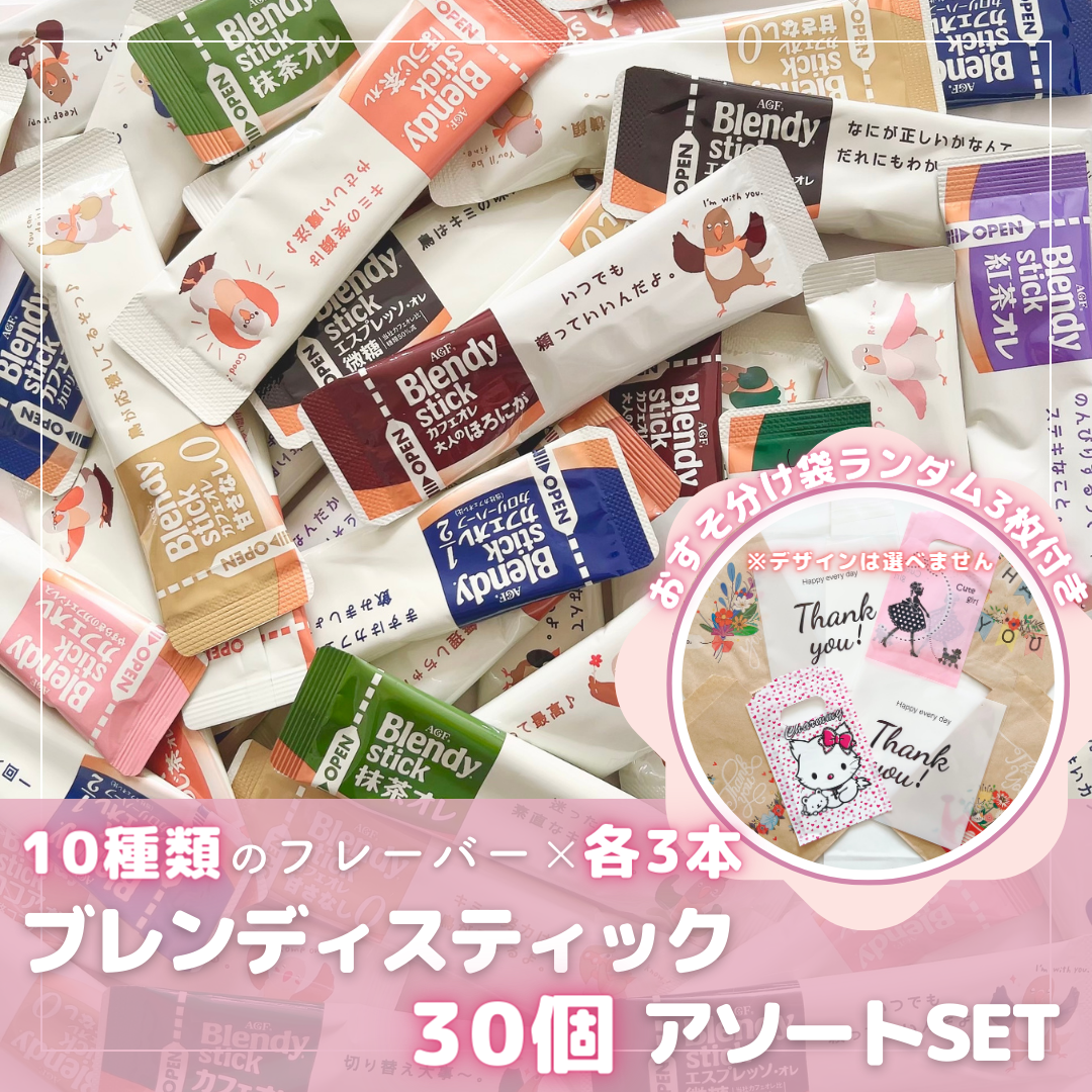 AGF ブレンディ スティック コーヒー ティー ココア 10種類 30本セット お裾分け袋付き プレゼント ギフト お礼 休憩 ばらまき 詰め合わせ アソート