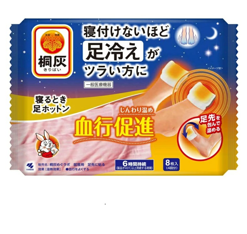 桐灰 寝るとき足ホットン 足先に貼る温熱シート 足先を包んで温める 6時間持続 8枚入 きりばい 小林製薬 カイロ