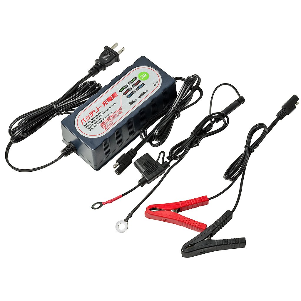 バイク 自動車 寒冷地モードが選択できるマルチタイプで、開放型、シールド型、ジェルバッテリーを充電できます。