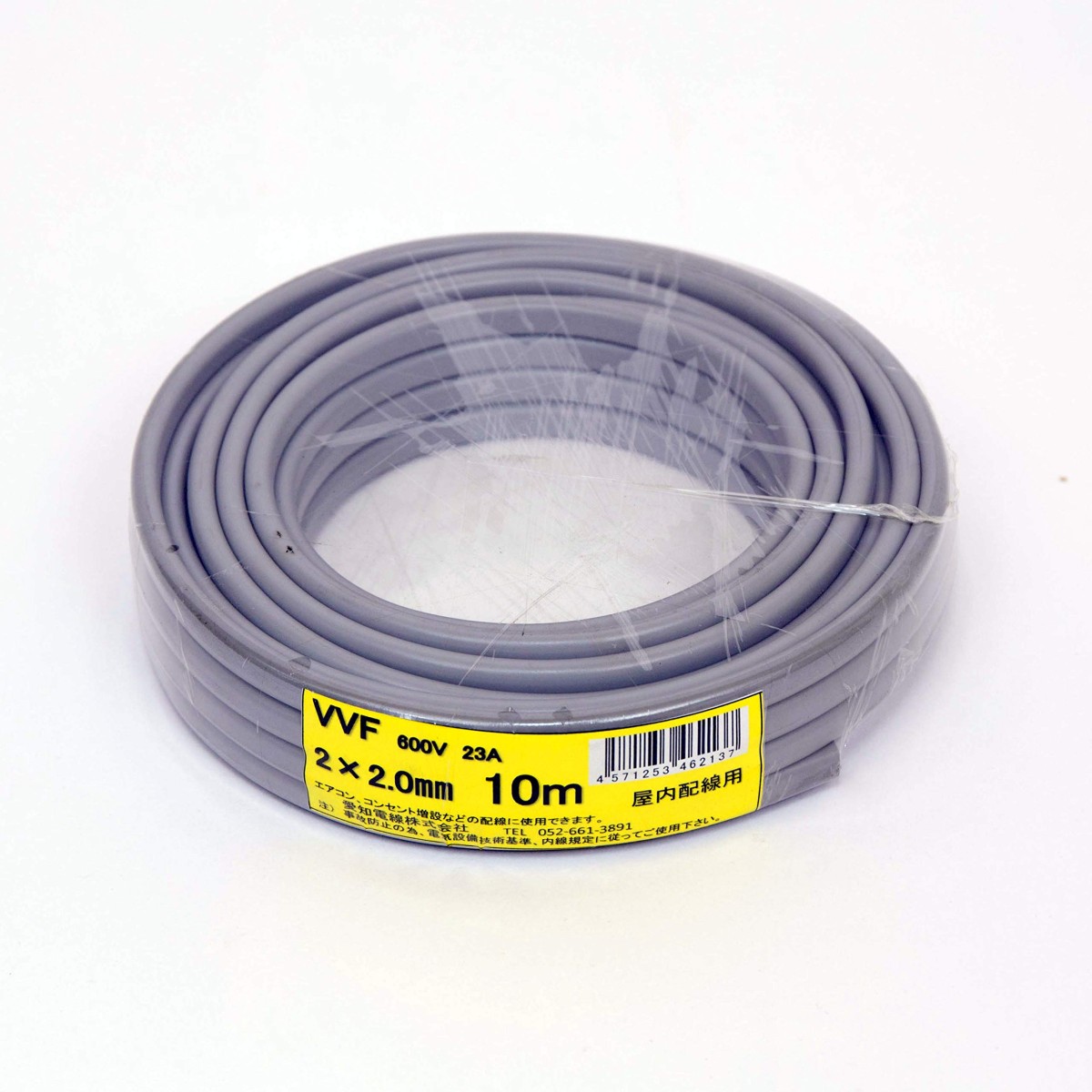 愛知電線 VVF ケーブル2芯 2.0mm 10m 灰色 VVF2×2.0M10