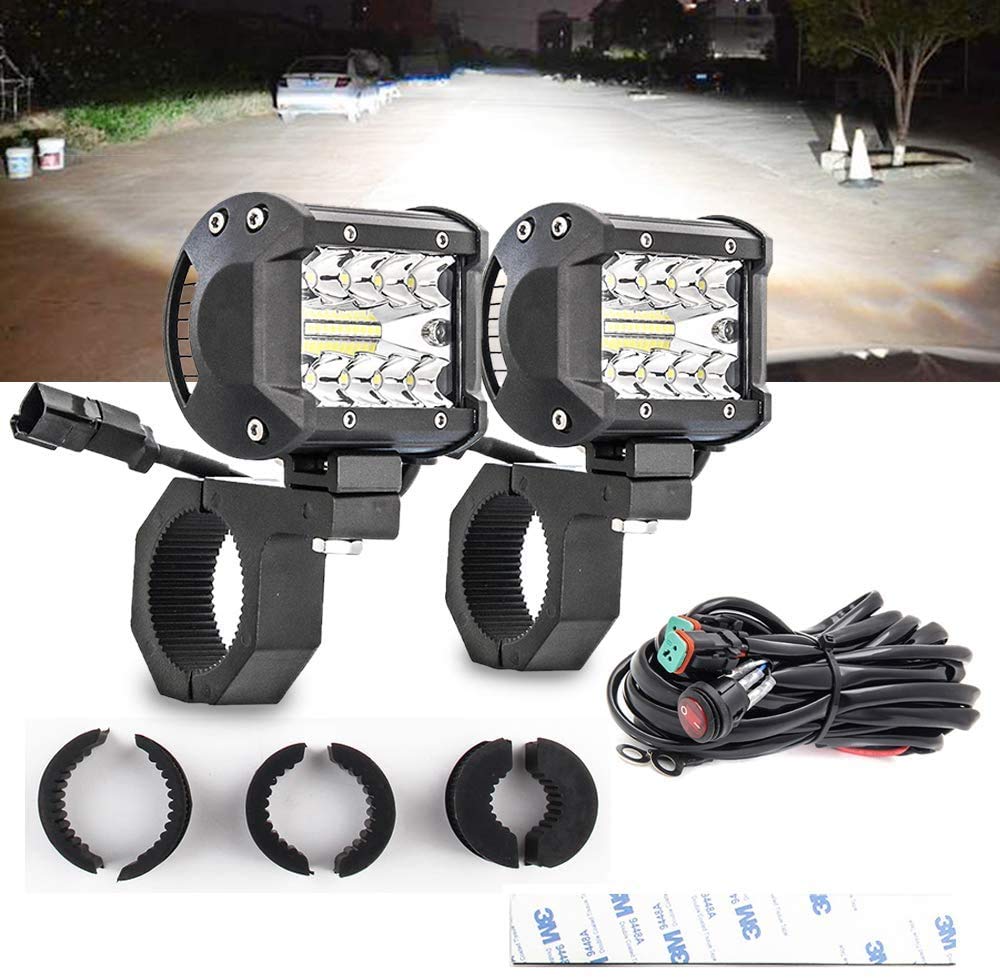 Color:ホワイト_Size:2個セット+ハーネス+ブラケット Chelhead LED作業灯 リレーハーネス付き ステー付き 4インチ バイク フォグランプ ホワイト 12-24v 兼