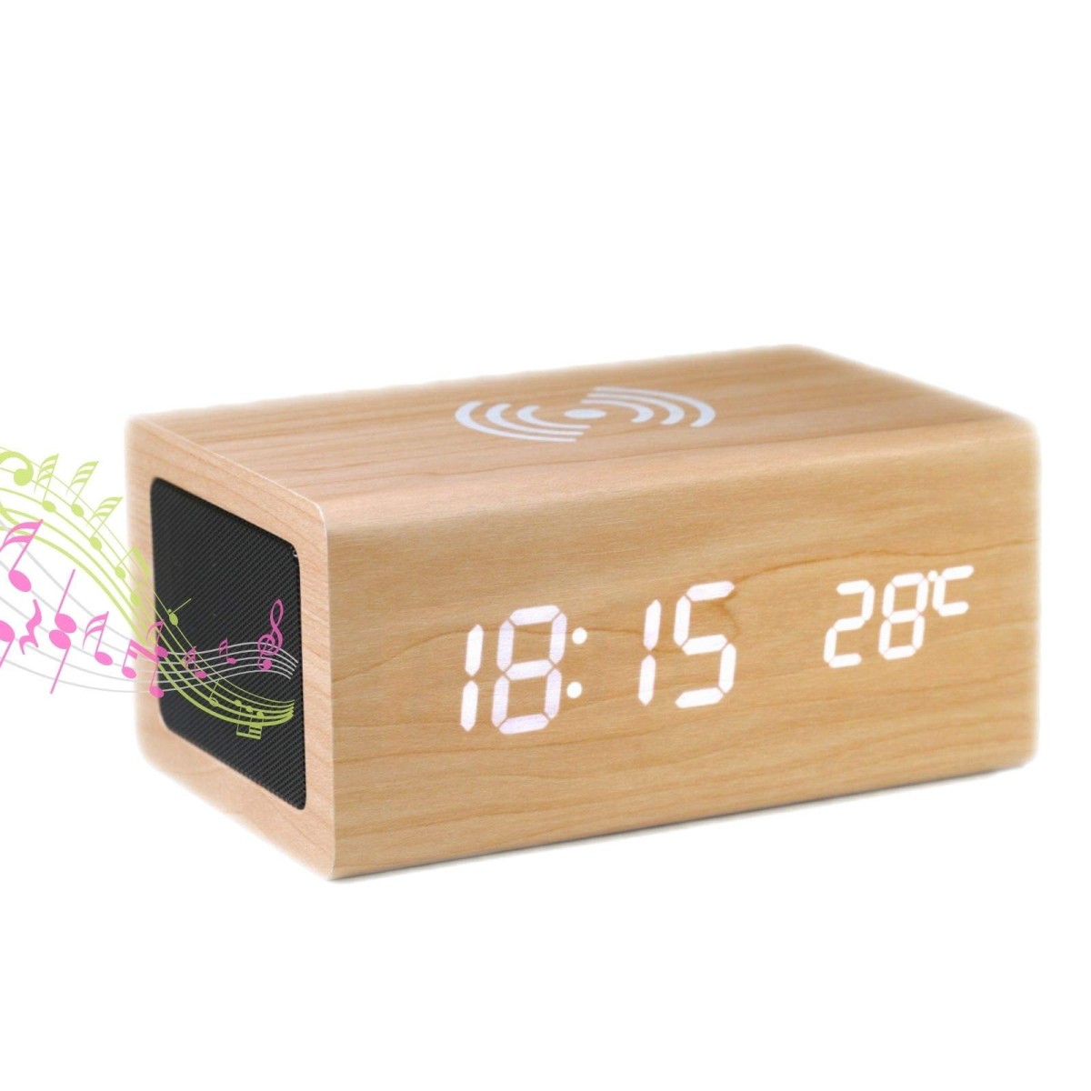 Color:おしゃれ木目 DEMI LOUS 置き時計 めざまし時計 bluetooth5.0 ワイヤレス スピーカー付き おしゃれ 充電時計 温度計 多機能 デジタル 卓上 アラームクロッ