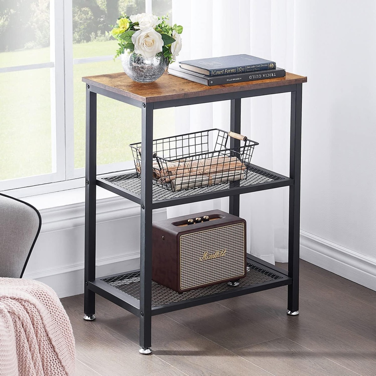 Color:幅60cm-レトロブラウン VECELO サイドテーブル ナイトテーブル おしゃれ オープンシェルフ 収納ラック コンパクト ベッド周り収納 小物置き 幅60×奥行35×高さ76cm 3段 多機能 棚 組立簡単 【日本正規輸入品】