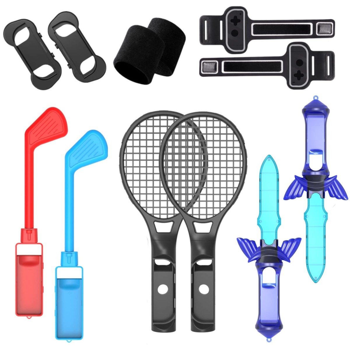 Switch Sports用 ゲーム ハンドル アクセサリー ゴルフクラブ テニスラケット スイッチ スポーツ 対応 対戦実装 没入感体験 Switch/Switch OLED用 レッグ/リストストラップ (12 in 1セット)
