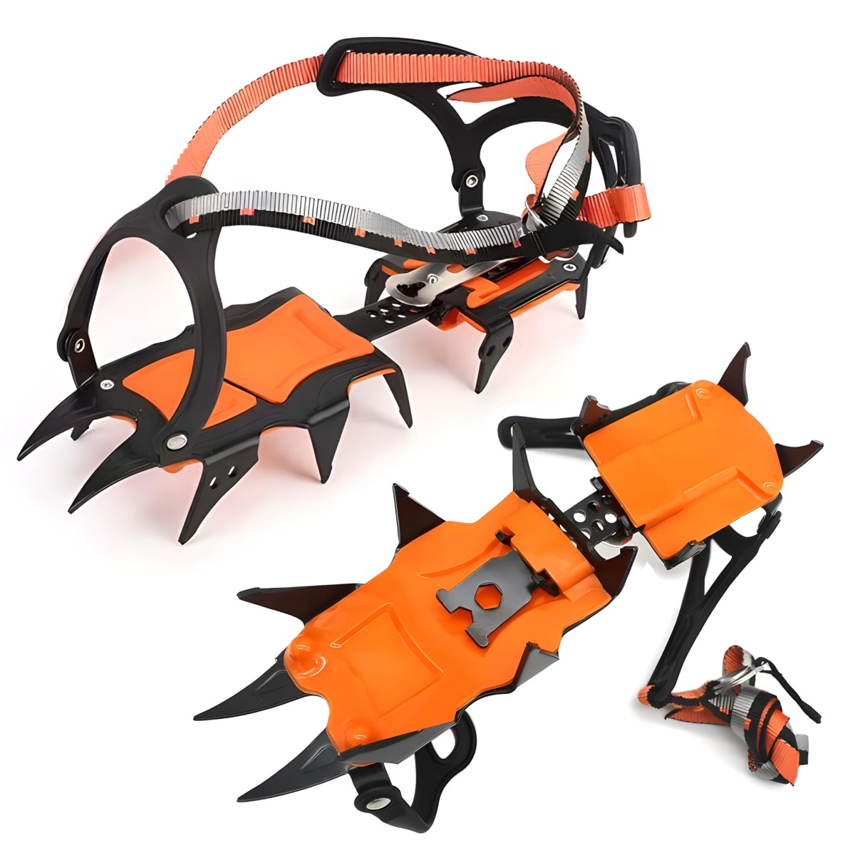 Color:本格的_Size:12本爪 YEZOND アイゼン 登山 オレンジ 12本爪 サイズは調整可能です 雪や氷の上を安全に歩くための本格的な登山用具 前爪が付いており、急斜面でのキックステップ 男女兼用