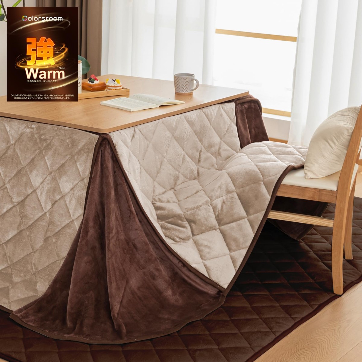 Size:220×240cm[適応こたつ天板]最大60×90cm_Color:ベージュ&ブラウン Colorsroom こたつ布団 ハイタイプ テーブル 省スペース 長方形 ダイニングコタツ掛布