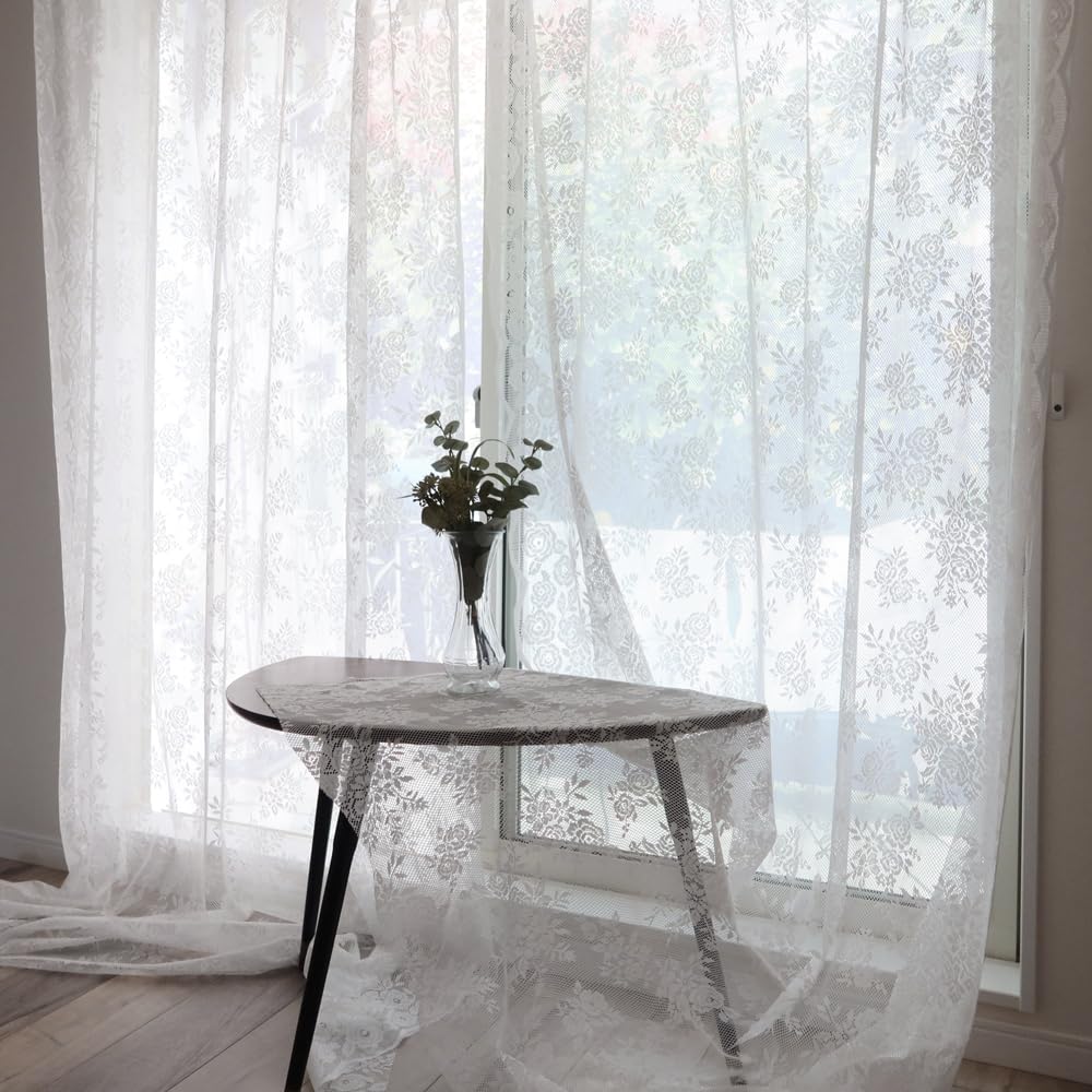 Style:【Bouquet ブーケ】 フリーカットレースカーテン2枚組【Bouquet ブーケ】34087 バラ柄 (約100cm幅×約250cm丈)フリーカットレースカーテン 自由に丈変更 ハサミでカット 丈調整可能 カーテンフック付き